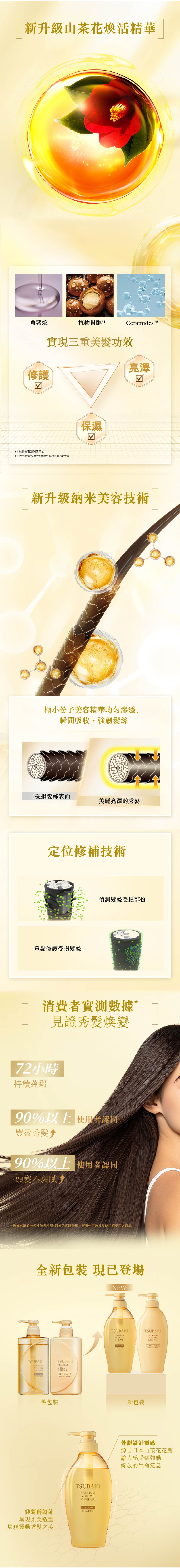皇牌煥髮修護配方:山茶花油、Ceremide、澳洲堅果油、蜂皇漿、角鯊烷、牛磺酸等滋養成分深入髮芯、豐盈賦活